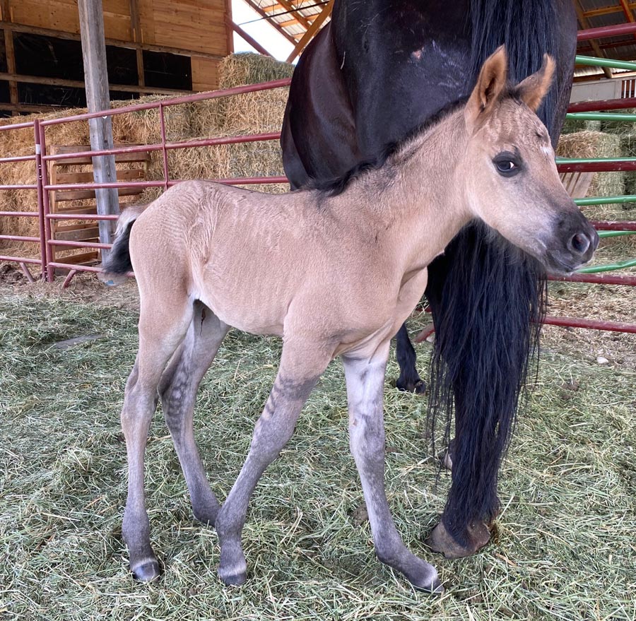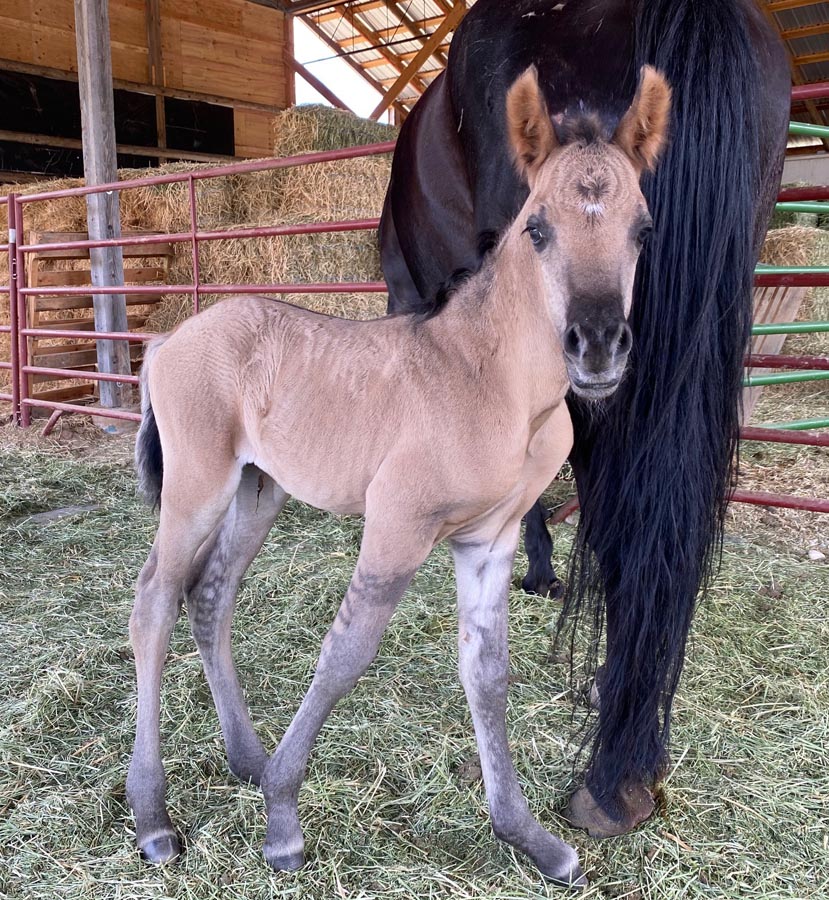 Breed's first homozygous dun grulla filly (EEDD)