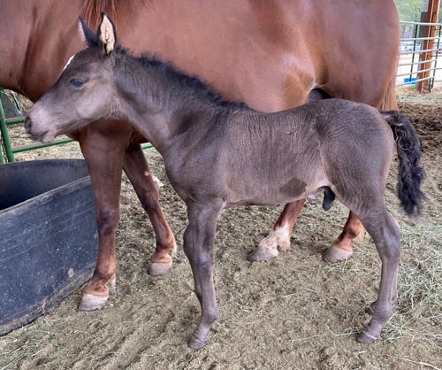 Bacchus Blessing x RG Denmark's Blue Lace) 2023 smoky grulla filly EEaaDDCr RETAINED