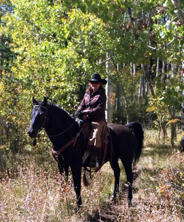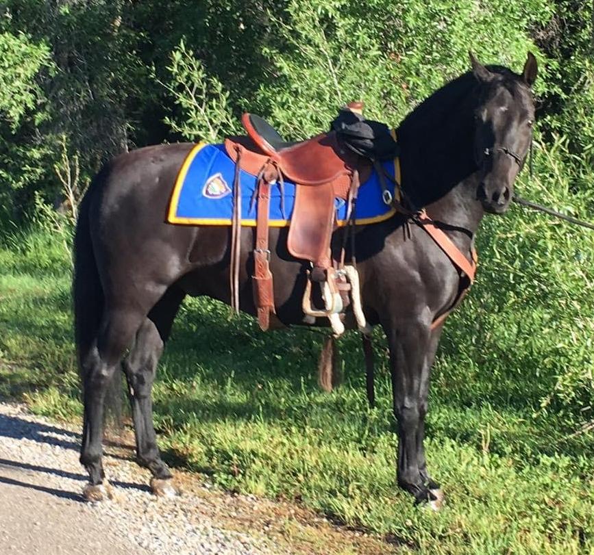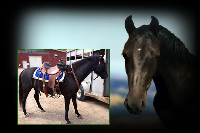 this smoky black youngster. He was imprinted at birth and is the most kind, gentle, and personable horse in the pasture. His quiet nature and trust in people let me take him through the Jackson Hole Citizen's Mounted Unit as a four year old successfully.