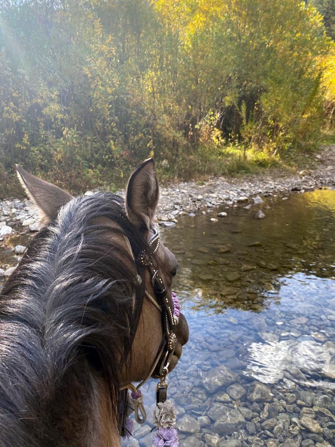 With her unflappable nature and willingness to help, we are confident this mare will make a great trail horse and breed ambassador.