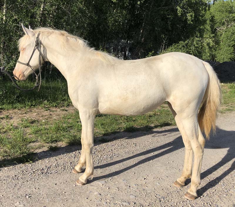 when the opportunity to own this filly presented itself I had to succumb. She is a rare perlino dun with the bloodlines, size, and temperament I want to replicate.